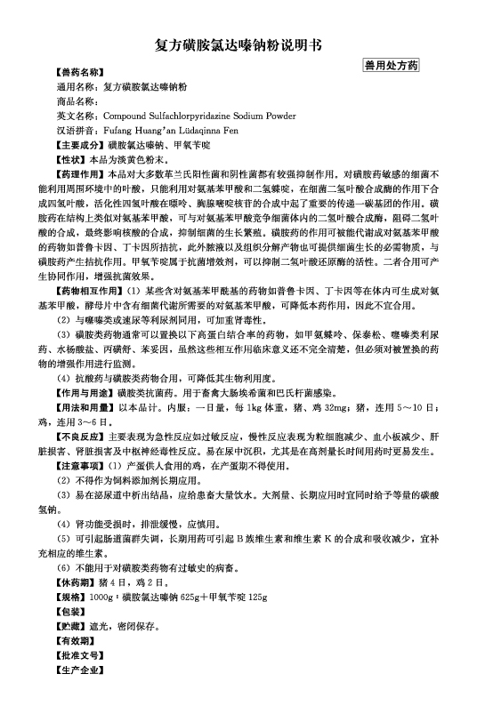 用于巴氏桿菌和大腸桿菌所致的細菌性疾病。