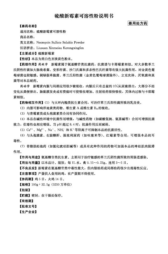 用于治療豬、雞革蘭氏陽(yáng)性菌、陰性菌引起的大腸埃希菌病、沙門氏菌病、巴氏桿菌病以及支原體引起的呼吸道疾病。
