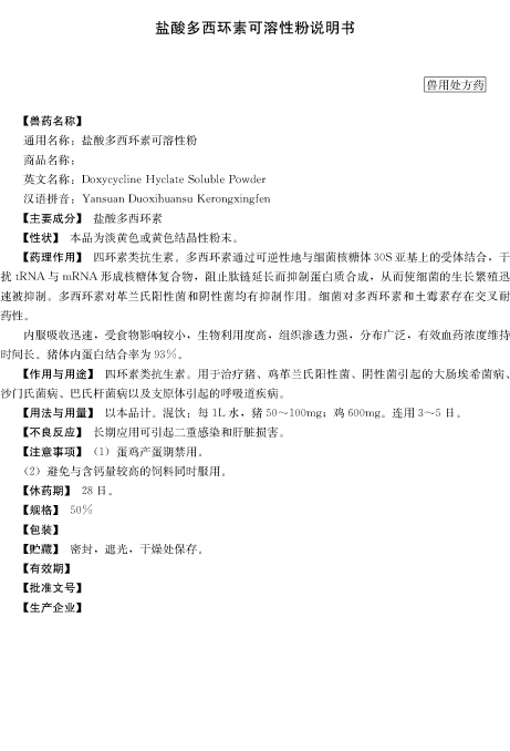 用于巴氏桿菌和大腸桿菌所致的細(xì)菌性疾病。