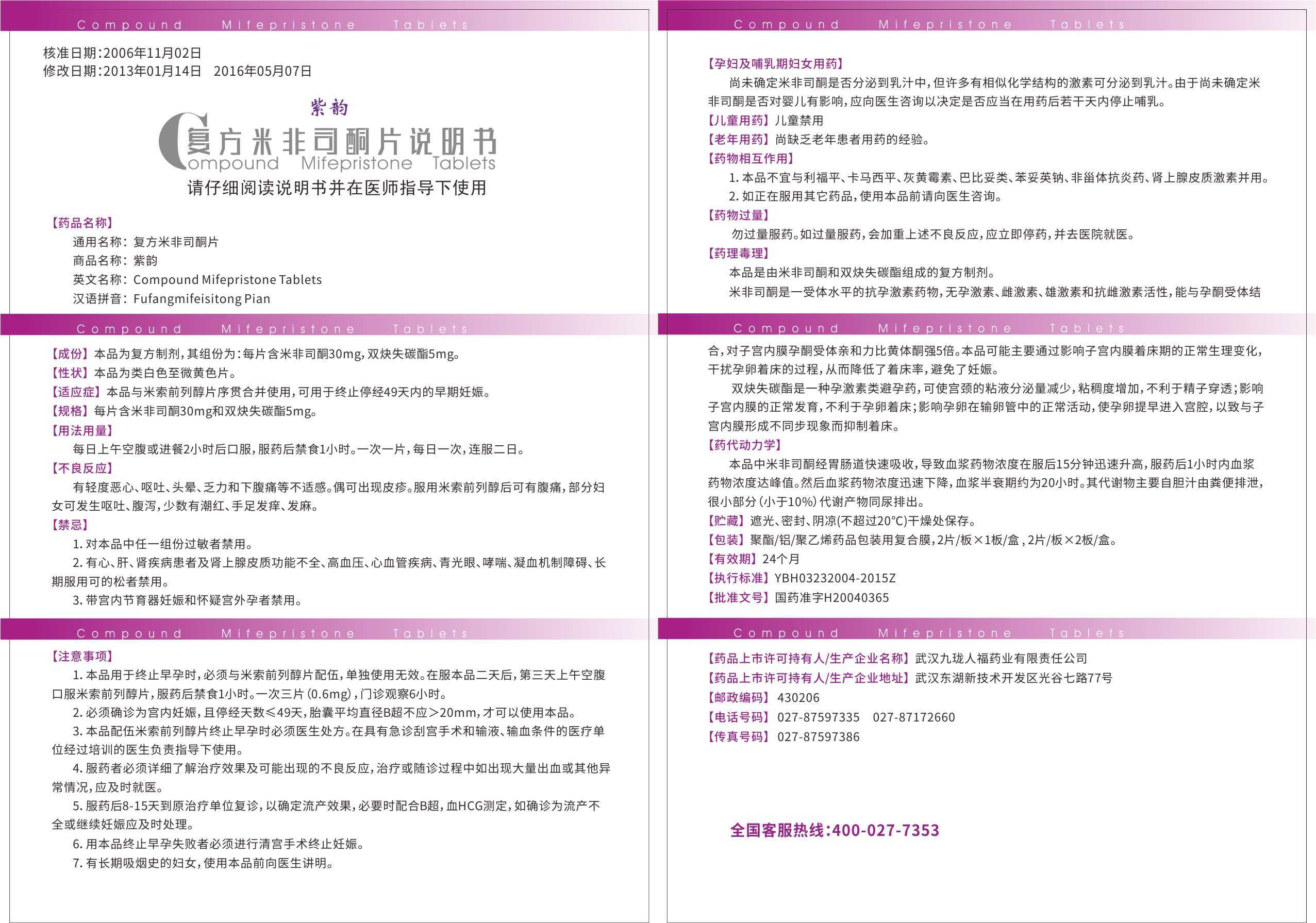 本品與米非司酮序貫合并使用,用于終止停經(jīng)49天內(nèi)的早期妊娠。