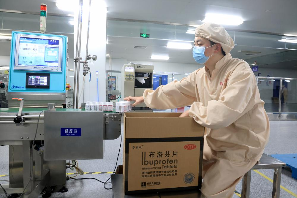 在公司遠(yuǎn)安口服制劑車間,布洛芬生產(chǎn)線一刻不停地運轉(zhuǎn),該產(chǎn)品可用于緩解感染新冠病毒后出現(xiàn)的發(fā)熱、頭痛、四肢酸痛等癥狀。另外,對乙酰氨基酚片、復(fù)方氨酚烷胺膠囊、福爾可定糖漿等藥品也都在園區(qū)加緊生產(chǎn)。