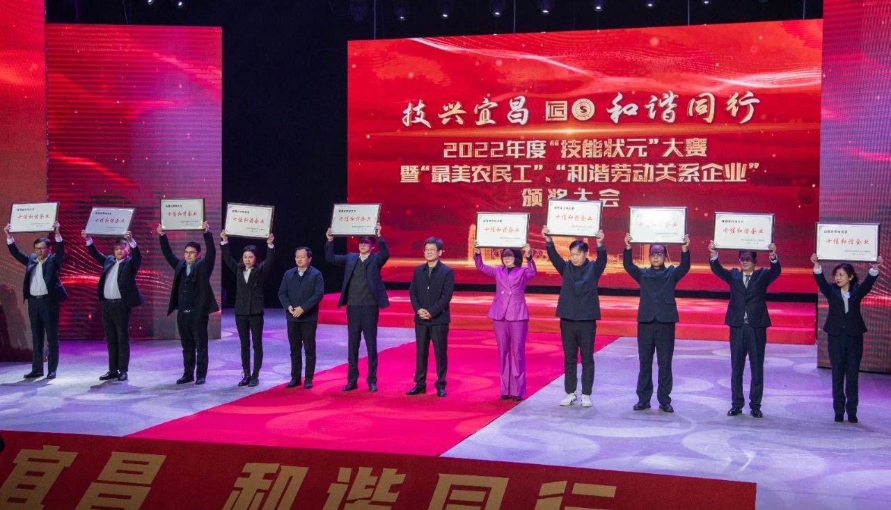 湖北省人力資源和社會保障廳黨委書記、廳長劉艷紅,宜昌市委副書記、政法委書記張桂華,宜昌市委常委、組織部部長汪偉,宜昌市委常委、常務(wù)副市長汪元程,宜昌市委常委、市委統(tǒng)戰(zhàn)部部長、市總工會主席燕元沂,宜昌市委常委、市委宣傳部部長周正英分別為各獲獎單位頒獎,人福醫(yī)藥集團(tuán)黨委書記、董事長李杰出席大會?!昂椭C企業(yè)”創(chuàng)建是宜昌市深入推進(jìn)“和諧同行”能力提升三年行動,努力構(gòu)建高質(zhì)量的和諧勞動關(guān)系,打造勞動者與企業(yè)共進(jìn)共榮的勞動關(guān)系和諧企業(yè)典型的重要途徑,是宜昌市加快強(qiáng)產(chǎn)興城、創(chuàng)建典范城市的重要舉措。