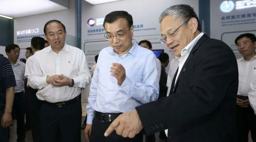 ??????? 5月23日下午,國(guó)務(wù)院總理李克強(qiáng)考察武漢光谷展示中心,在生物醫(yī)藥展區(qū)聽(tīng)取人福醫(yī)藥匯報(bào)企業(yè)創(chuàng)新成果。