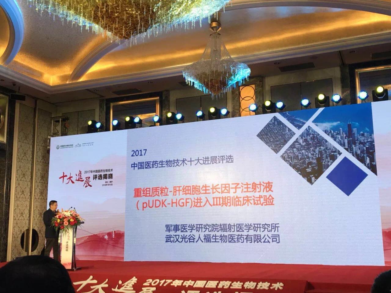 ? ? ? ? ?1月13日,由中國(guó)醫(yī)藥生物技術(shù)協(xié)會(huì)和《中國(guó)醫(yī)藥生物技術(shù)》雜志社共同主辦的“2017年中國(guó)醫(yī)藥生物技術(shù)十大進(jìn)展評(píng)選揭曉”活動(dòng)在浙江桐廬舉行,人福醫(yī)藥集團(tuán)的“重組質(zhì)粒-肝細(xì)胞生長(zhǎng)因子注射液進(jìn)入Ⅲ期臨床”項(xiàng)目最終入選。出席本次活動(dòng)的嘉賓有評(píng)選專家團(tuán)代表魏于全院士、程京院士,主辦和承辦單位的領(lǐng)導(dǎo)、投資人和企業(yè)家、中央及地方十余家媒體記者。