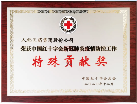 人福醫(yī)藥集團(tuán)榮獲中國紅十字會新冠肺炎疫情防控工作特殊貢獻(xiàn)獎。