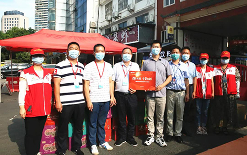 一個(gè)多星期以來(lái),該小區(qū)醫(yī)護(hù)人員和工作人員一直堅(jiān)守一線,經(jīng)受著酷暑和物資短缺的多重考驗(yàn)。在得知小區(qū)急需防疫物資和降暑等生活物資后,人福醫(yī)藥集團(tuán)積極組織采購(gòu)了12000只口罩、100公斤消殺酒精、50箱純凈水、50箱方便面,緊急送到社區(qū)工作人員手中。