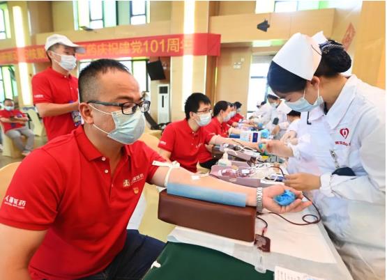 6月29日,武漢市衛(wèi)生健康委、武漢血液中心與人福醫(yī)藥集團(tuán)聯(lián)合開(kāi)展“黨旗飄揚(yáng) 熱血人福”黨建共建活動(dòng),以實(shí)際行動(dòng)慶祝中國(guó)共產(chǎn)黨成立101周年?;顒?dòng)當(dāng)天,近200多名黨員和職工“熱血集結(jié)”、奉獻(xiàn)愛(ài)心,最終121人成功獻(xiàn)血32260毫升。