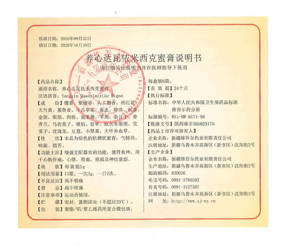 養(yǎng)心達(dá)瓦依米西克蜜膏